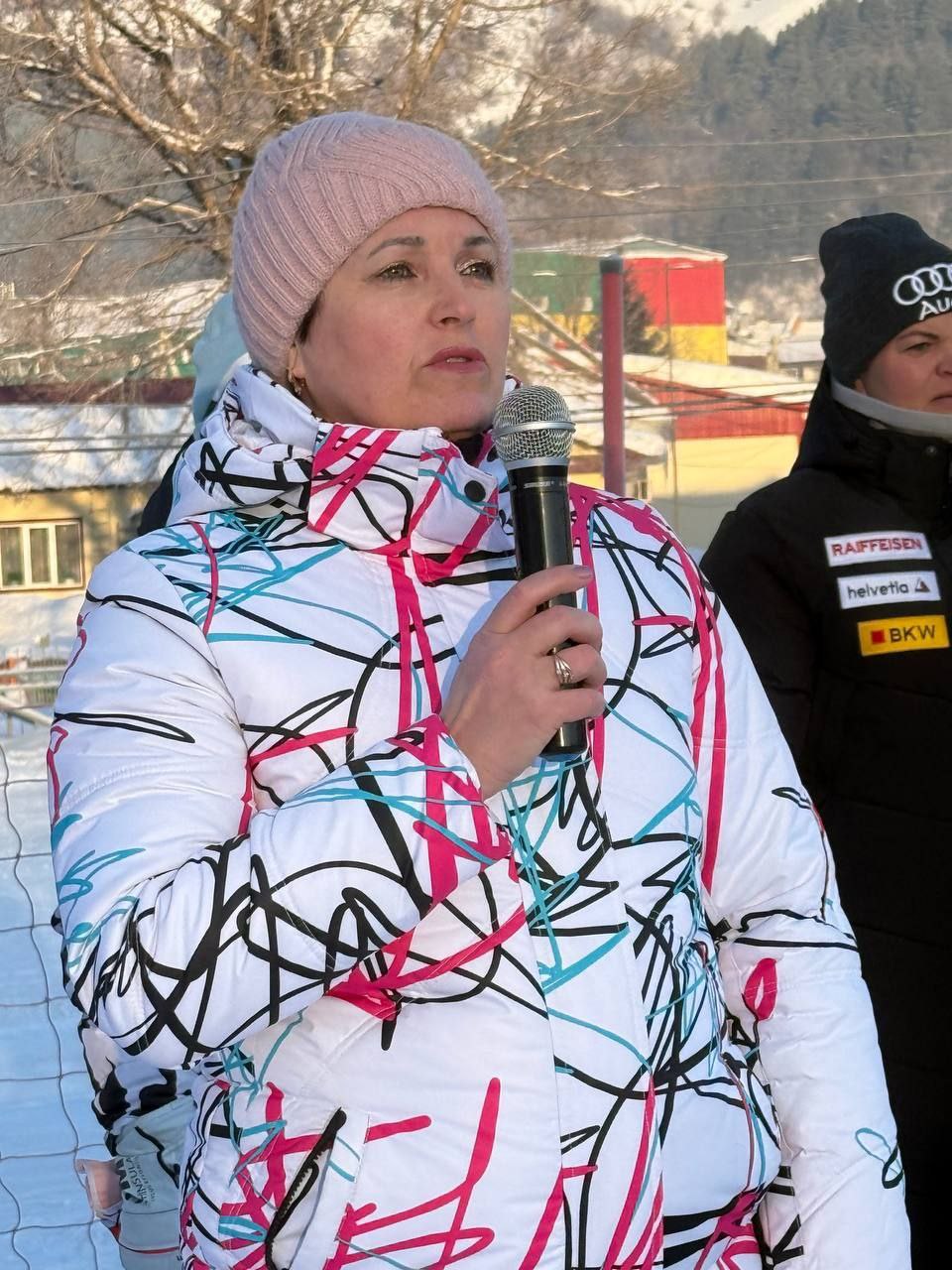 На торжественном открытии поприветствовала участников Кубка, пожелала всем успешных стартов и быстрых секунд на трассе. А ветеранов поблагодарила за поддержку и популяризацию горнолыжного спорта в Республике Алтай!