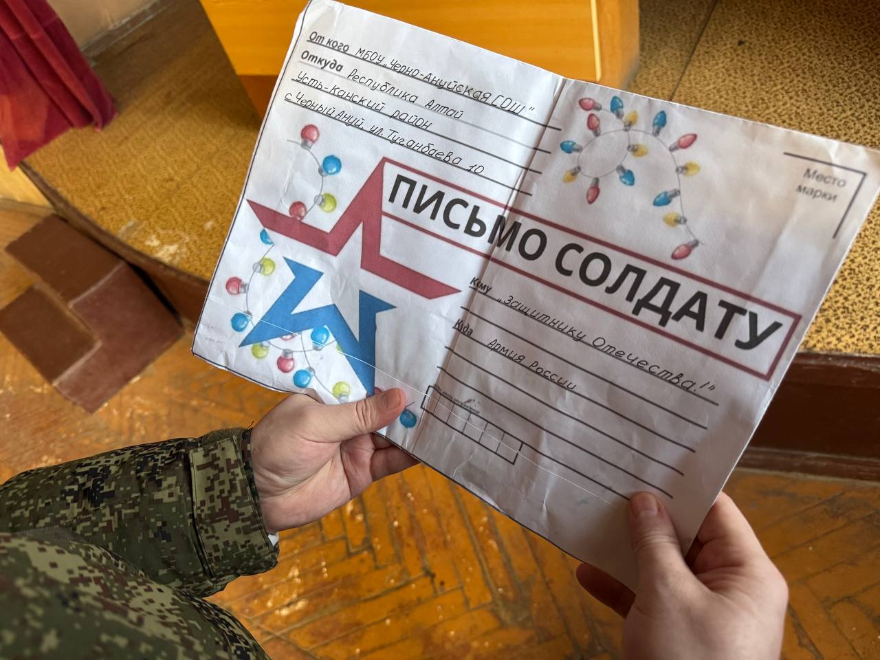 Земляку увезли индивидуальный набор новичка, одежду, продукты, алтайский чай, кедровые орехи, а также подарки и письма от детей Республики Алтай.