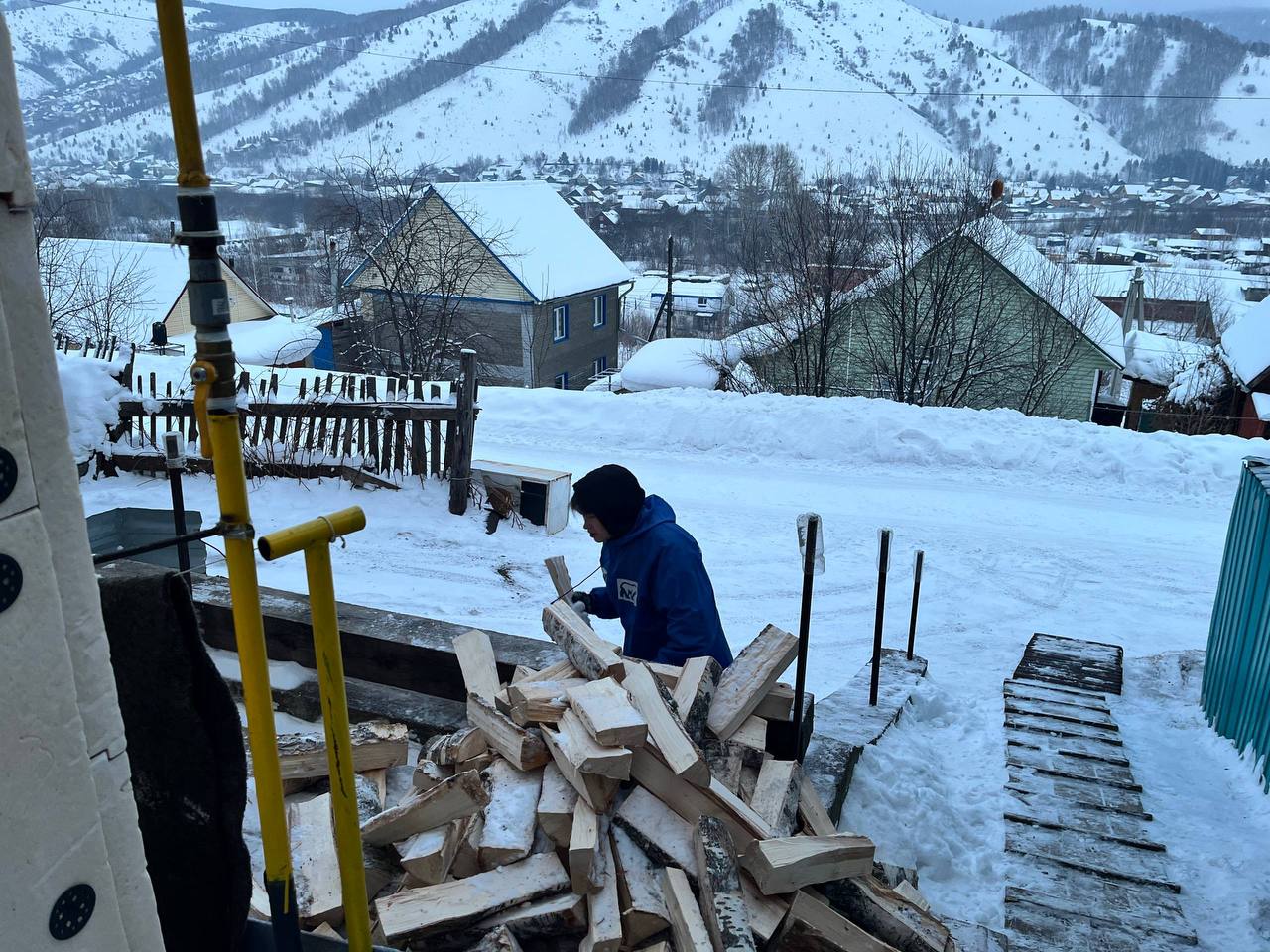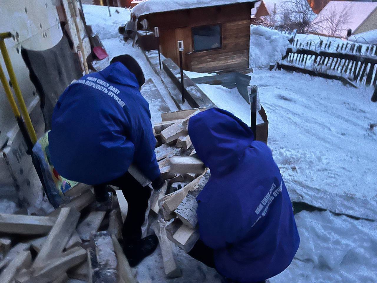Молодые люди не только помогли женщине разгрузить и сложить дрова для отопления её дома, но и привели в порядок придомовую территорию.