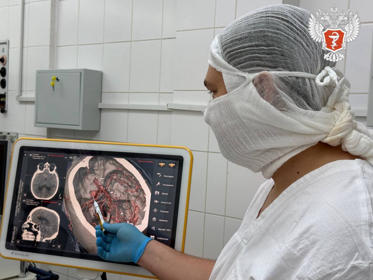 Нейрохирурги выполнили операцию по клипированию аневризмы с применением современной технологии интраоперационной флуоресценции — метода, позволяющего контролировать кровоток прямо во время вмешательства.