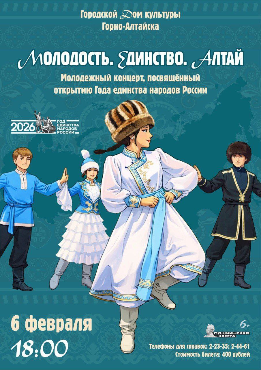 в пятницу, 6 февраля, в 18:00 – Молодёжный концерт «Молодость. Единство. Алтай».