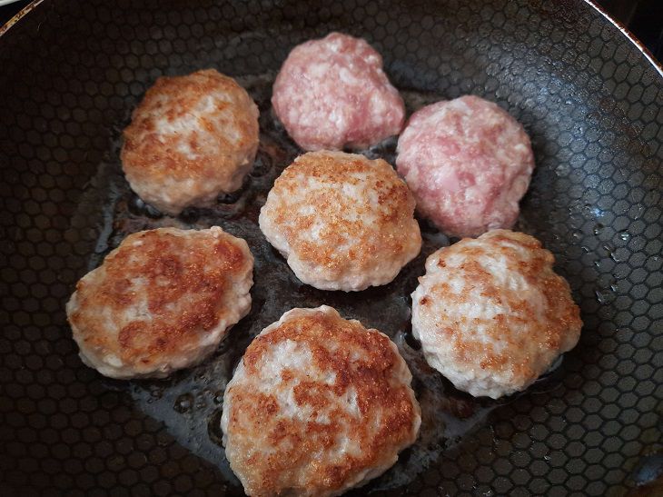 Слепить котлеты удлиненной формы и обвалять их в панировке из тонкомолотых сухарей, далее поставить на огонь средней силы большую сковороду и влить в нее остатки масла, сильно разогреть.