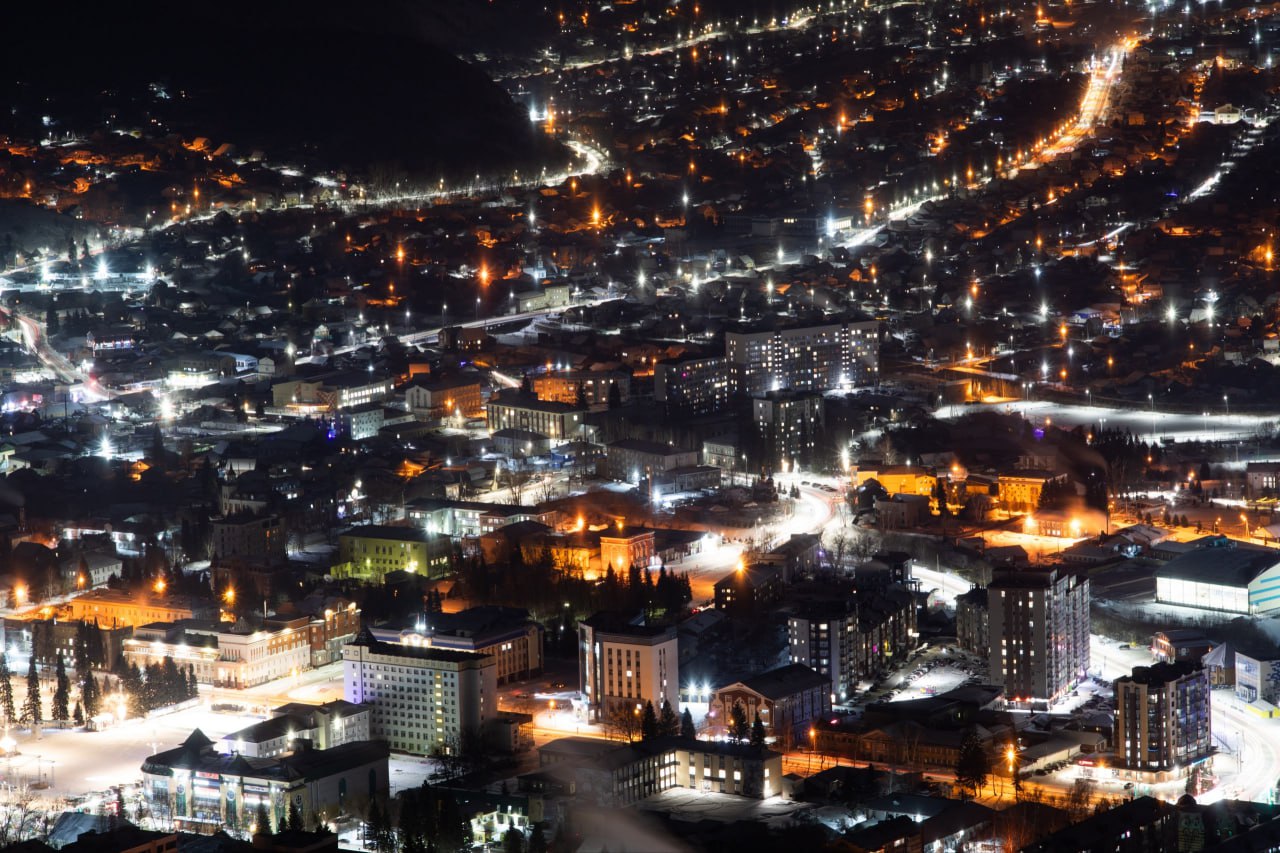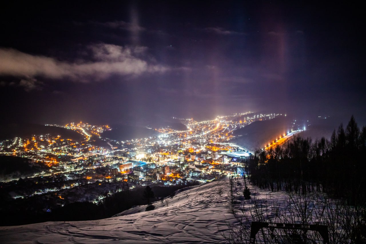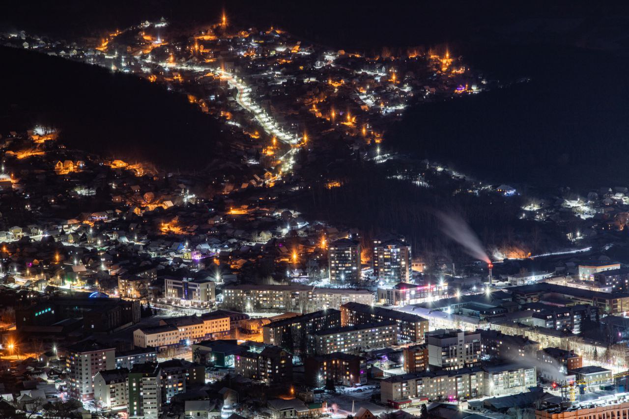 Световые столбы над Горно-Алтайском минувшей ночью. Фото: Евгений Дядькин.