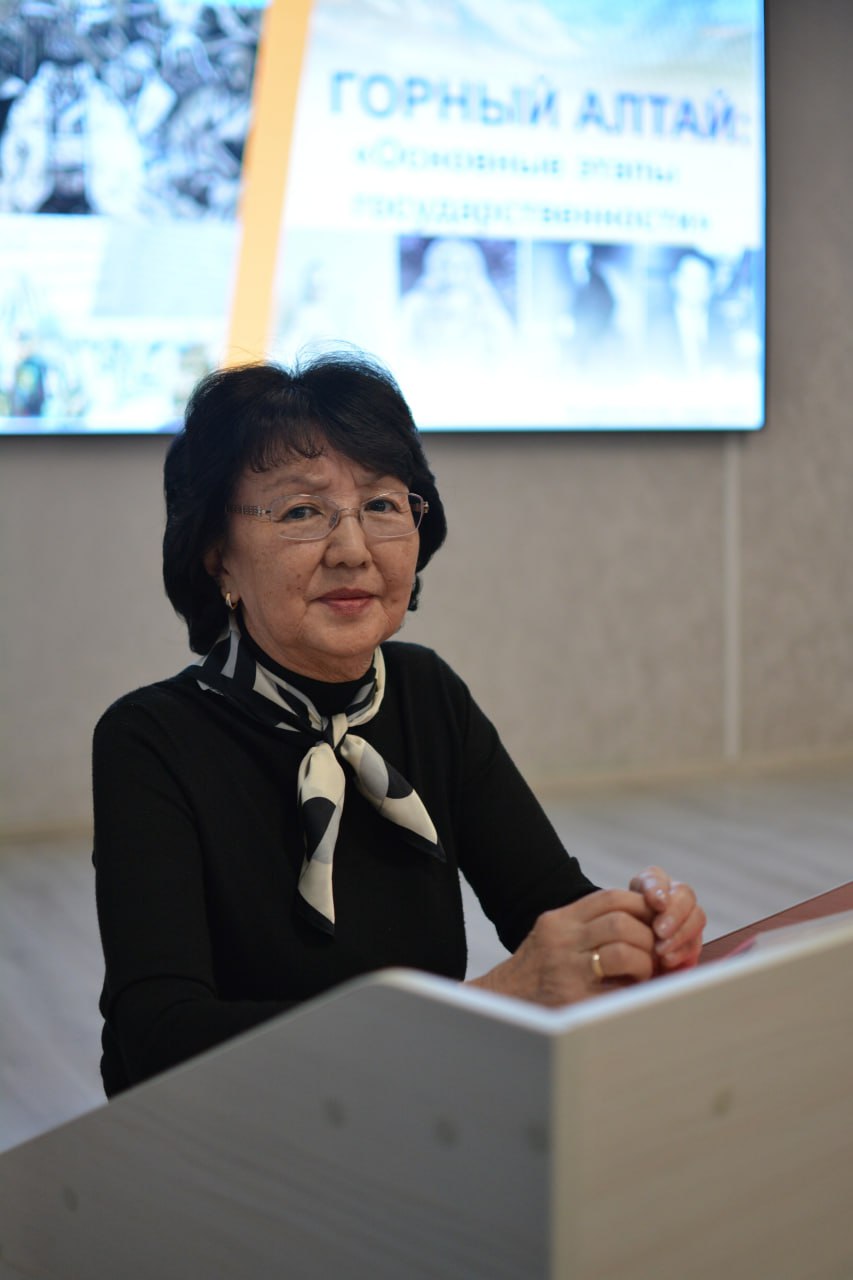 В своем выступлении она осветила ключевые этапы становления государственности алтайского народов, вопросы его самоопределения и развития, которые во многом определили хозяйственный, экономический и социокультурный облик региона.