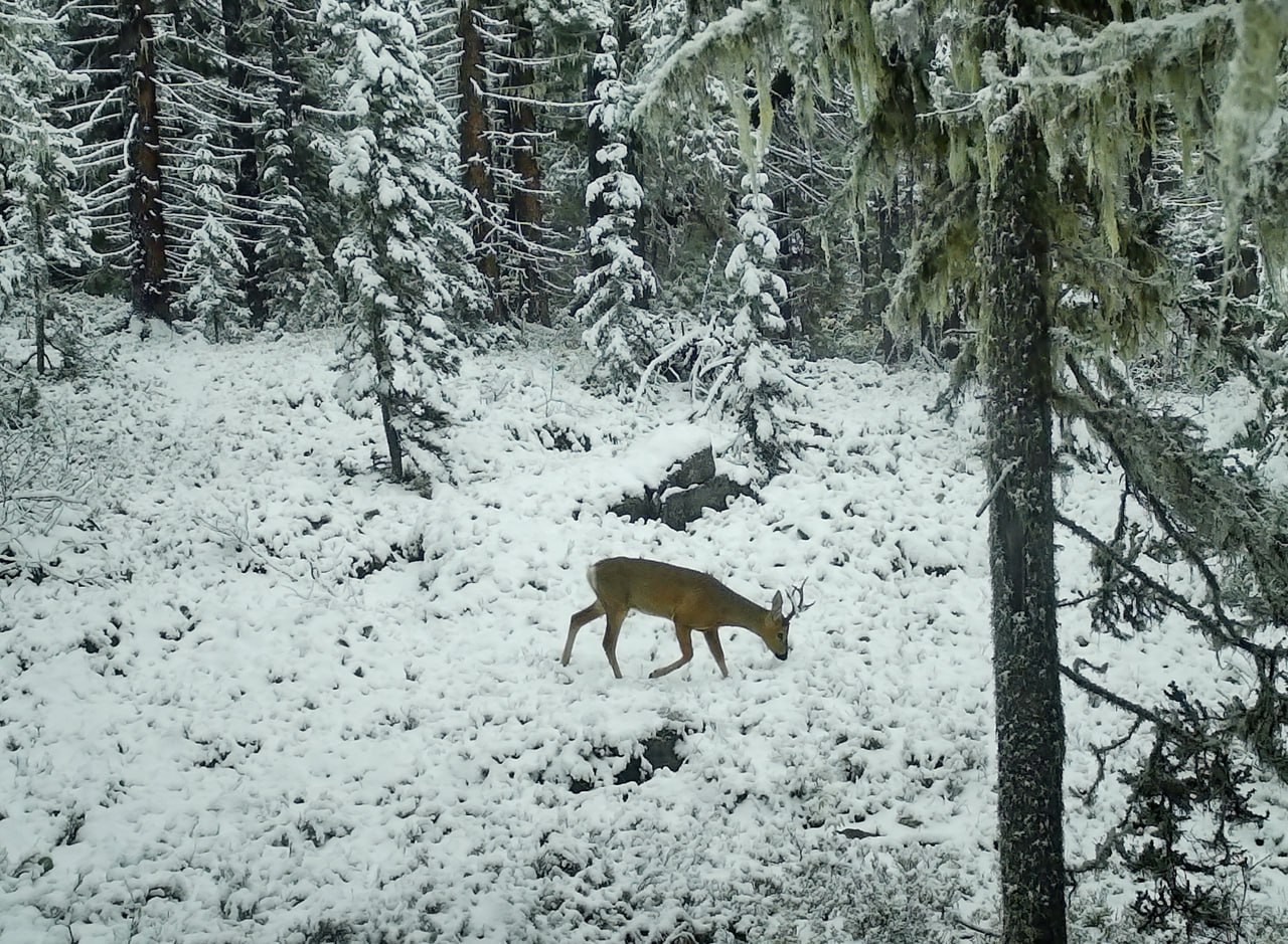 Как отметил ведущий научный сотрудник Юрий Николаевич Калинкин, особенность этого маршрута - наличие в высокогорье «оазиса» для копытных. Пищухи там складывают сено под раскидистыми высокогорными кедрами, что привлекает маралов и позволяет им благополучно зимовать в этих местах.