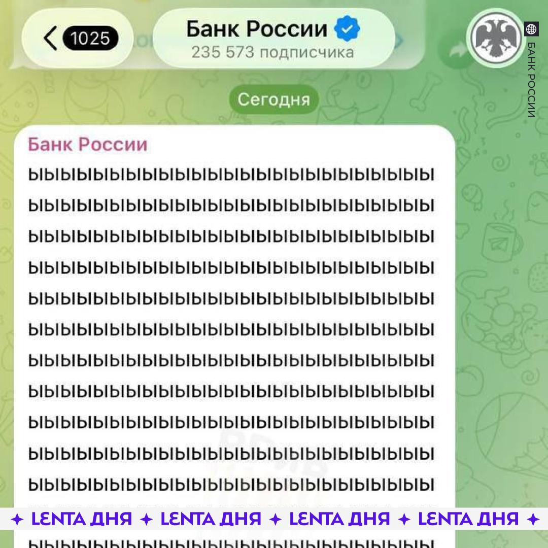 Вчера в официальном канале Банка России вышла необычная публикация, состоящая из множества букв «ы» и «ф». Через время пост удалили, а после в пресс-службе ЦБ пояснили, что сообщение оставил «кот-админ».