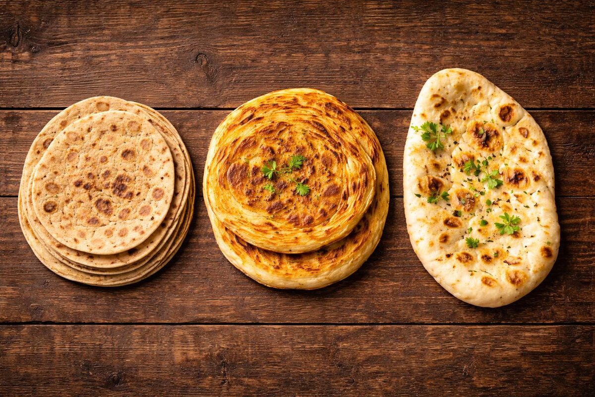 Эти лепешки также готовятся без дрожжей, но тесто раскатывают и многослойно смазывают маслом гхи, что придает им особую слоистую консистенцию. Параты часто готовят с начинками — картофель, цветная капуста или мясной фарш делают их более сытными и привлекательными. Такие лепешки покорят сердца гурманов, ведь это уже не просто гарнир, а полноценное блюдо.