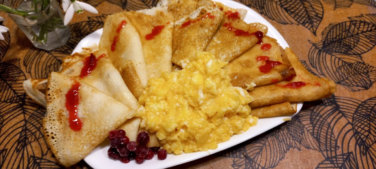 Первый день Масленицы, известный как день встречи, стал настоящим гастрономическим открытием для всех любителей блинов. Одна из участников праздника угостила своих друзей блинами, которые были поданы с оригинальной сладкой яичной болтушкой. На вид это было аппетитное лакомство, привлекающее своим нежным вкусом и легким яичным ароматом.