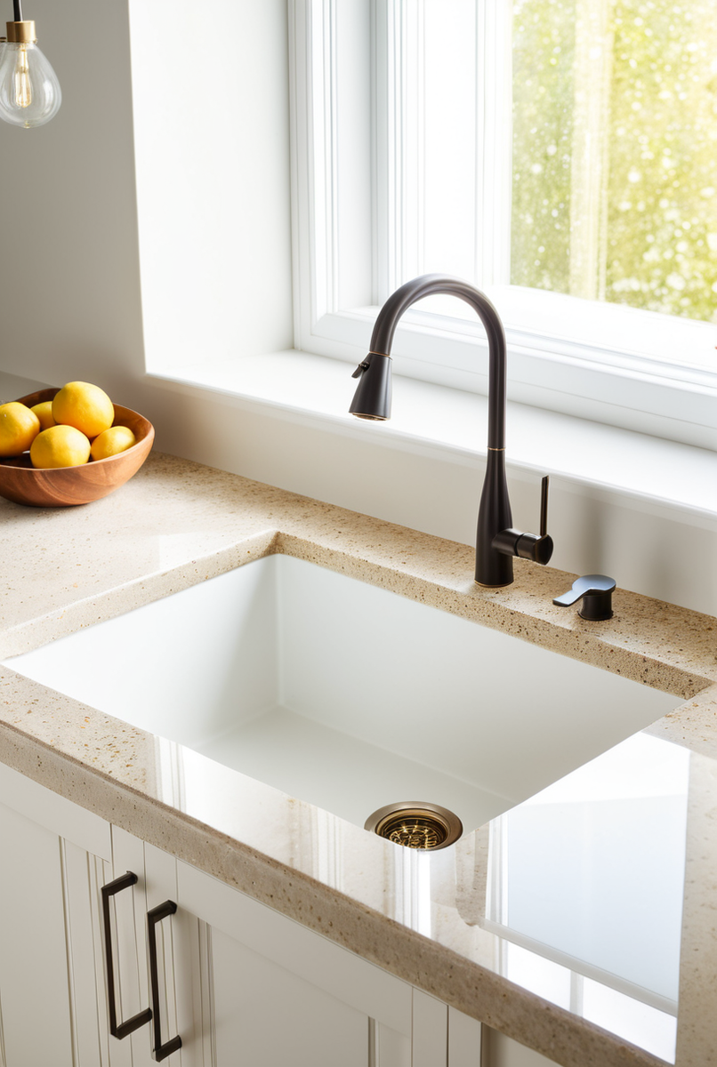 Кварцевая мойка — это образец современного материала, созданного на основе кварцевого агломерата, содержащего до 95% натурального кварца. Эта композитная структура делает раковину идеальным вариантом для кухни, объединяя функциональность и стиль.