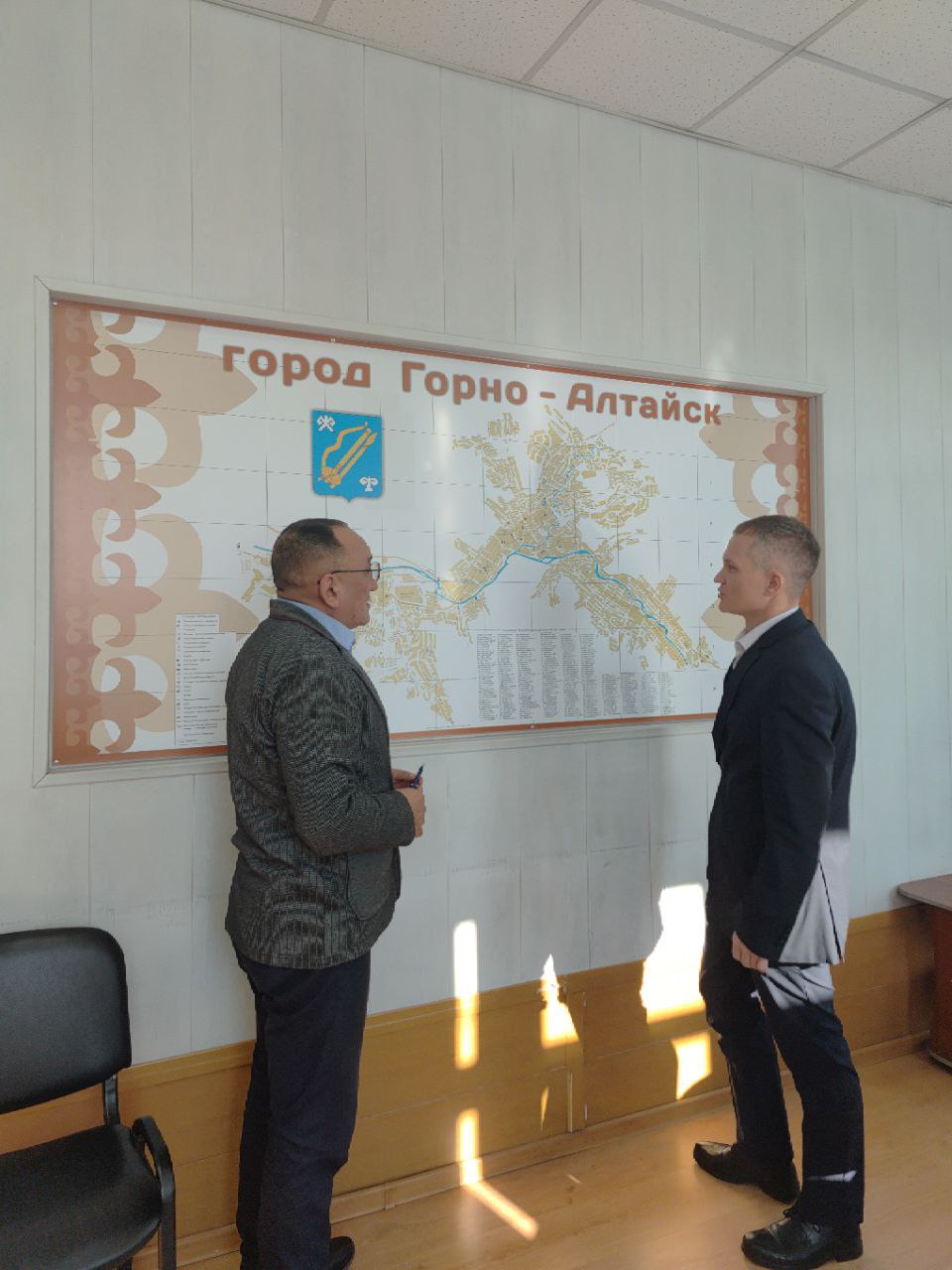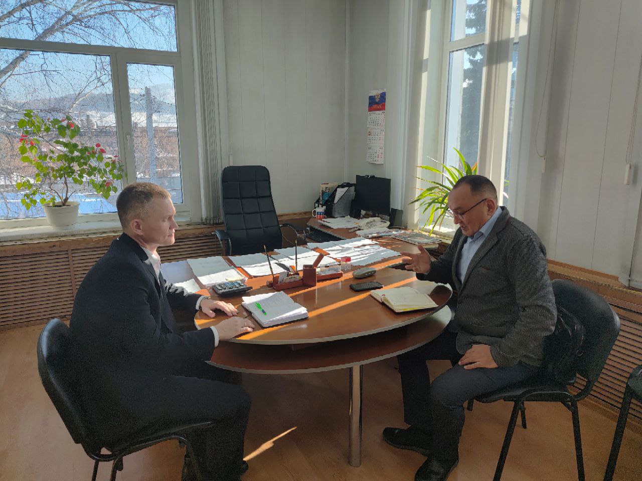 Депутат РА Пётр Попошев встретился с директором управления ЖКХ и дорожного хозяйства администрации города Валентином Чибиряком.