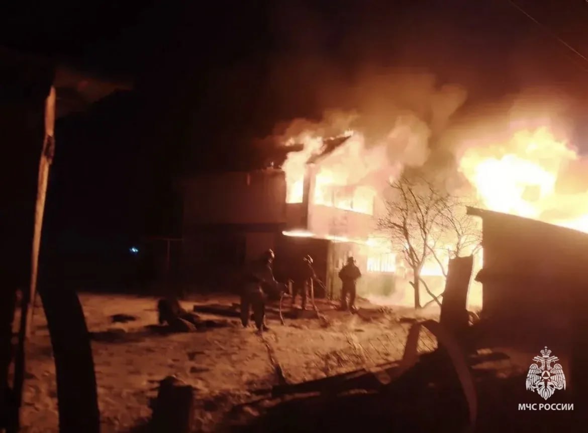 По информации МЧС РА,в 05:53 поступило сообщение о пожаре в двухэтажном жилом доме и надворных постройках на улице Речной. На момент прибытия первого подразделения баня и гараж, в котором находились три легковых автомобиля, были охвачены огнем. Пламя стремительно распространялось на второй этаж дома.