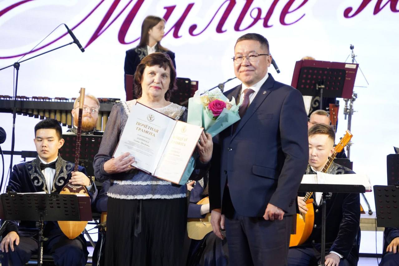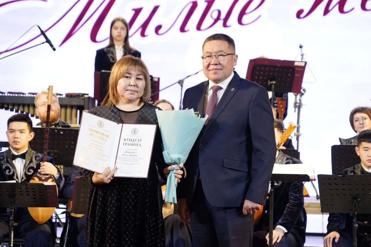 Сегодня в Национальном театре прошел торжественный концерт. Милых женщин поздравили наши известные артисты, в том числе самые юные мужчины – учащиеся Алтайской студии мальчиков под руководством Владимира Кончева.