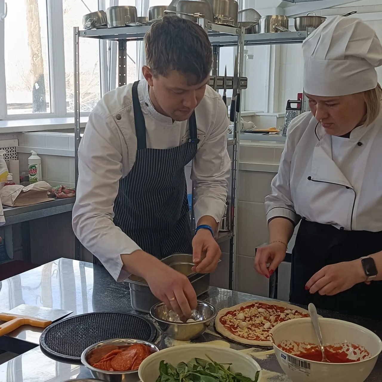 Под чутким руководством мастера участницы с энтузиазмом освоили тонкости приготовления теста, работу с томатным соусом, сыром моцарелла, колбасой и свежим базиликом. Вместе они создали классические варианты пиццы — «Маргариту» и «Пепперони», а затем с удовольствием продегустировали результаты своего труда.