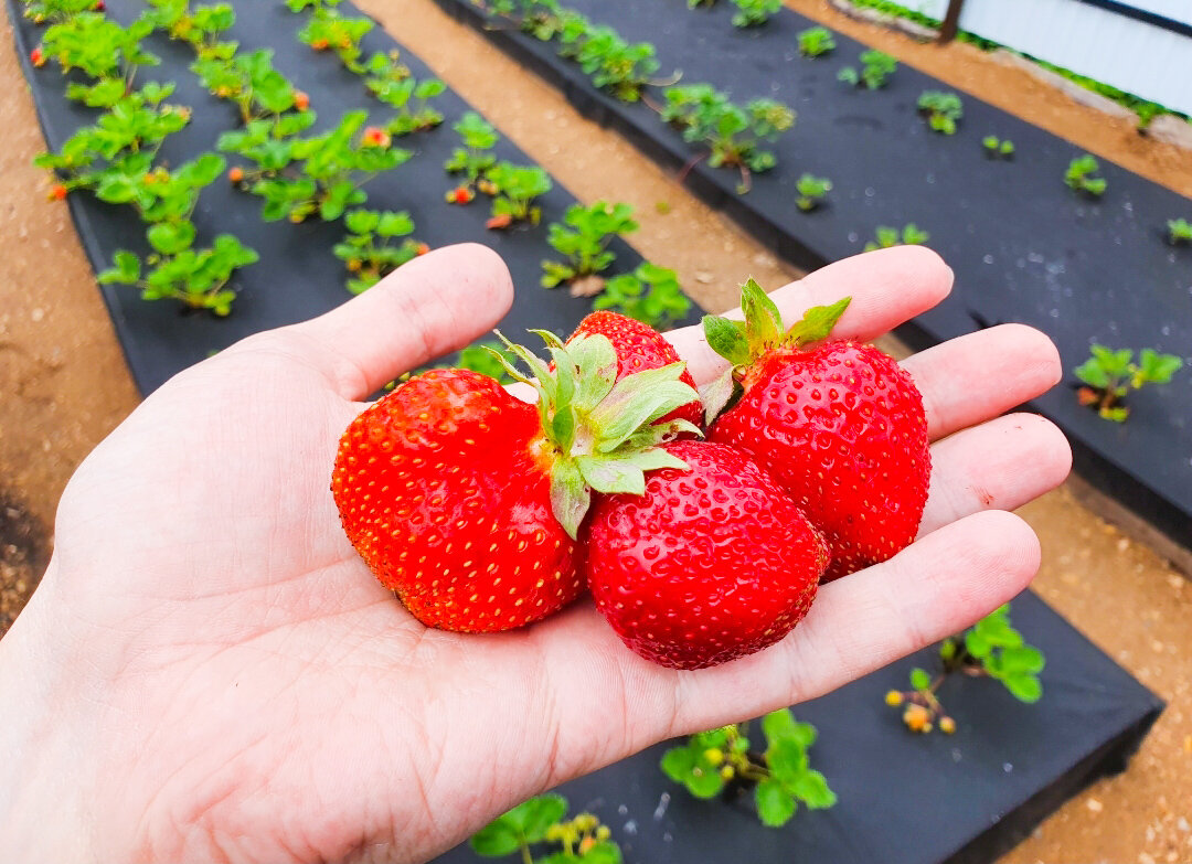 Гряды с клубникой, укрытые агроволокном, не только выглядят эстетично, но и избавлены от сорняков: травы не прорастают, а ягоды остаются чистыми даже после дождя.