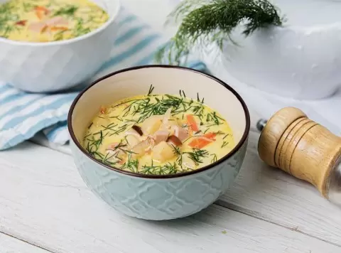 В наборе найдутся: ветчина из окорока, картофель, луковица, морковь, куриный бульон, сливки и зелень укропа. Всё под рукой превращается в полноценный обед без лишних мелочей.