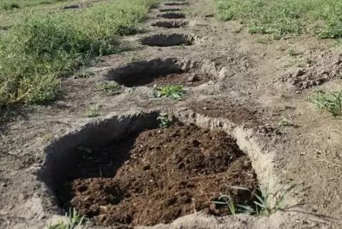- Рекомендуется накрыть ямы мульчей, такой как сухая трава или перегной, чтобы сохранить влагу и защитить от вымывания питательных веществ.