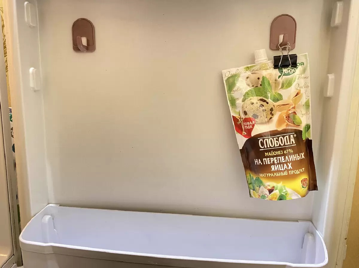 После того, как крючки закреплены, станет очевидным, насколько проще пользоваться холодильником. Например, можно повесить пакеты с соусами или другими мелочами, что создаст дополнительное пространство.