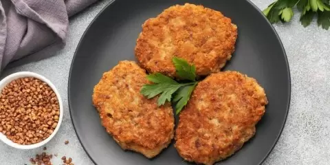 - Сформировать круглые котлеты и обжарить их на масле ГХИ по 5-7 минут с каждой стороны до золотистой корочки.