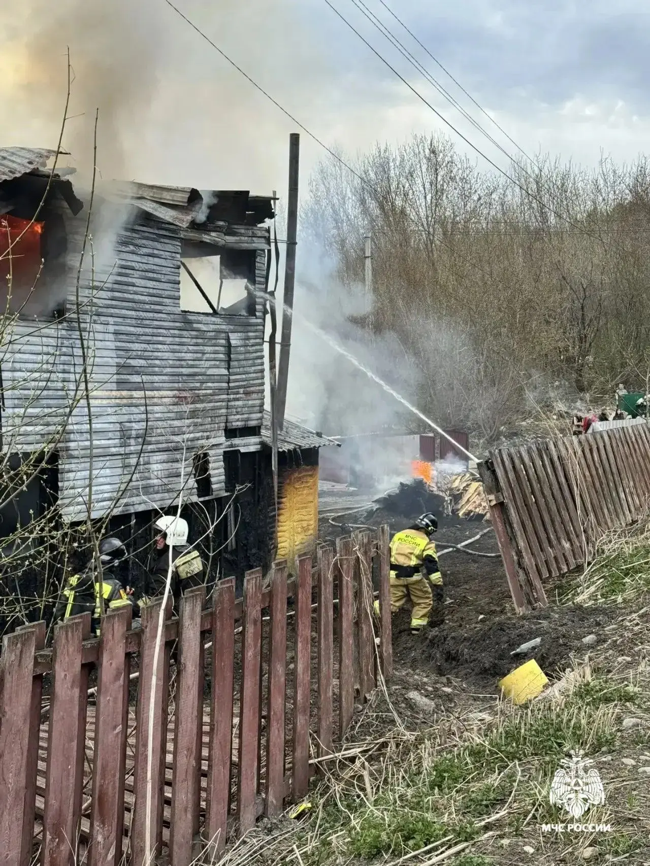 По поводу вчерашнего пожара – огонь бушевал на 200 квадратных метрах, горели двухэтажный жилой дом и хозяйственные постройки (баня, гараж) на улице Майской в Горно-Алтайске