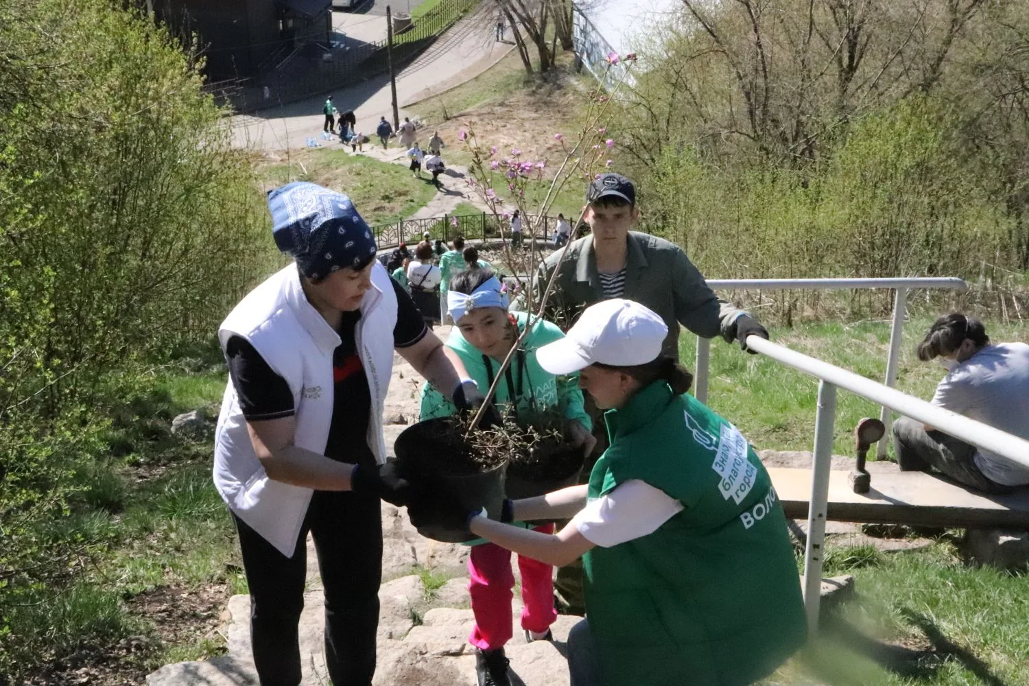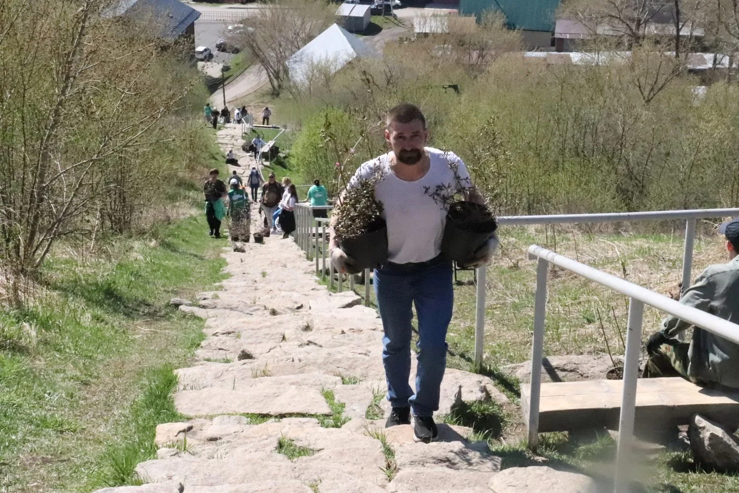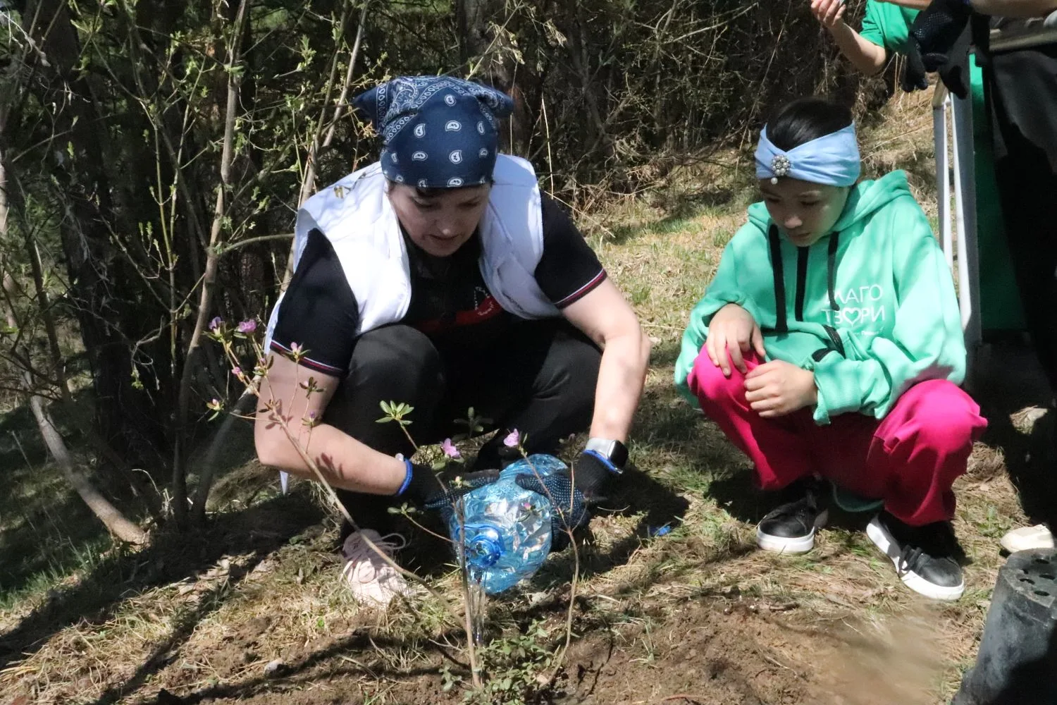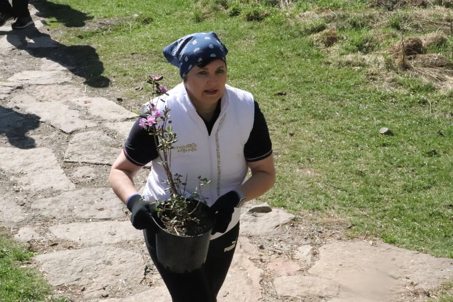 С участием Корпорации развития Республики Алтай и застройщиков - компании «Селфстроит» и «Карлуу» высадили сегодня 100 кустов маральника на горе Туугая вдоль каменной лестницы.