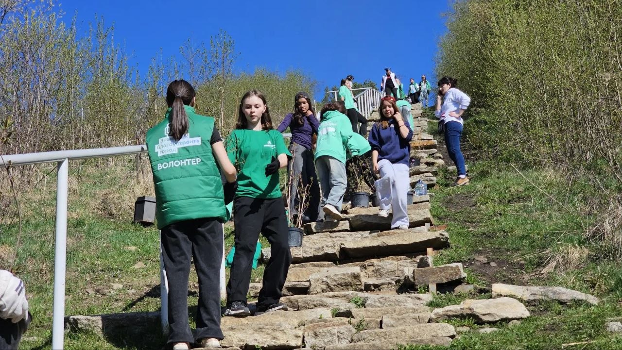 Субботник провели в Горно-Алтайске в панорамном парке «Гора Туугая».