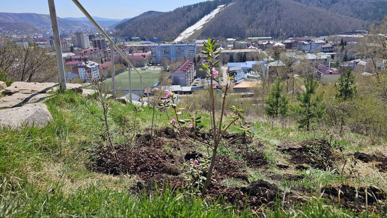 Здесь убрали мусор, отремонтировали и покрасили беседку, входную группу и высадили сотню кустов маральника.