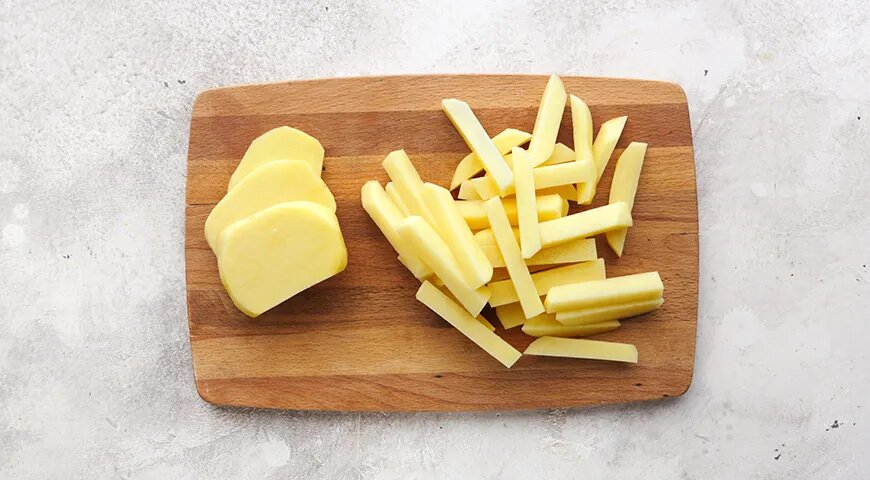 Чтобы в дальнейшем упростить процесс приготовления, можно предварительно заморозить нарезанные брусочки. Для этого разложите их на противень в один слой и поставьте в морозильник на 1-2 часа. После этого замороженные брусочки можно переложить в пакет, чтобы они не соединялись.