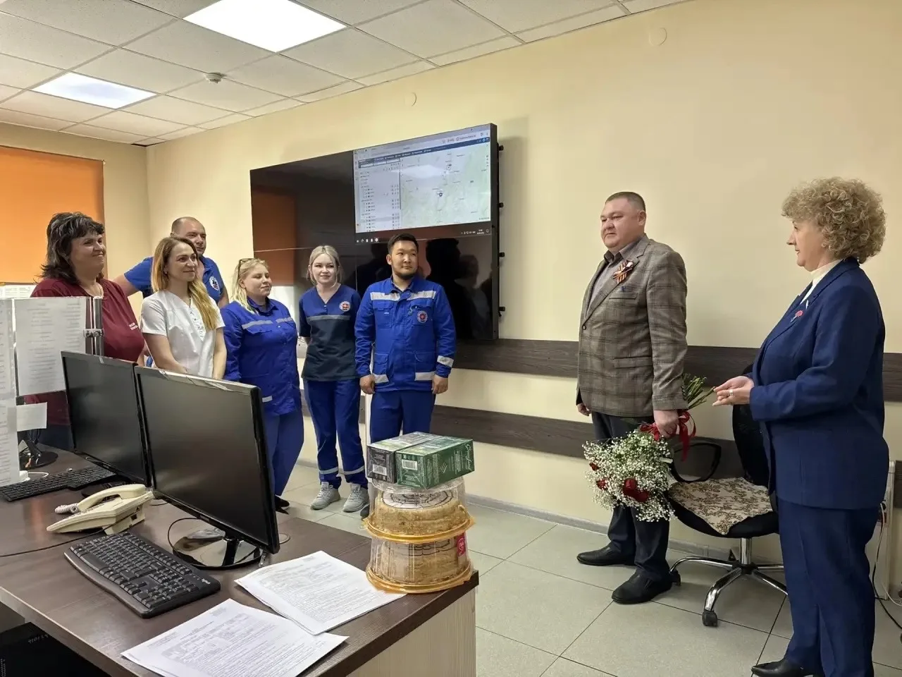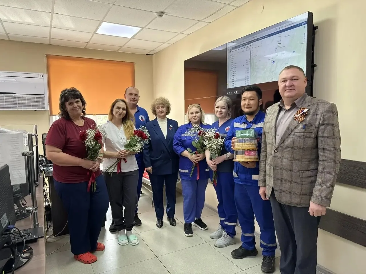 Со спикером райсовета Ильнуром Ударцевым и руководителем Майминского волонтерского движения Инной Поляковой она также поздравила бригады и диспетчеров Станции скорой помощи в Майме и в Манжероке, где круглосуточно работает пост.